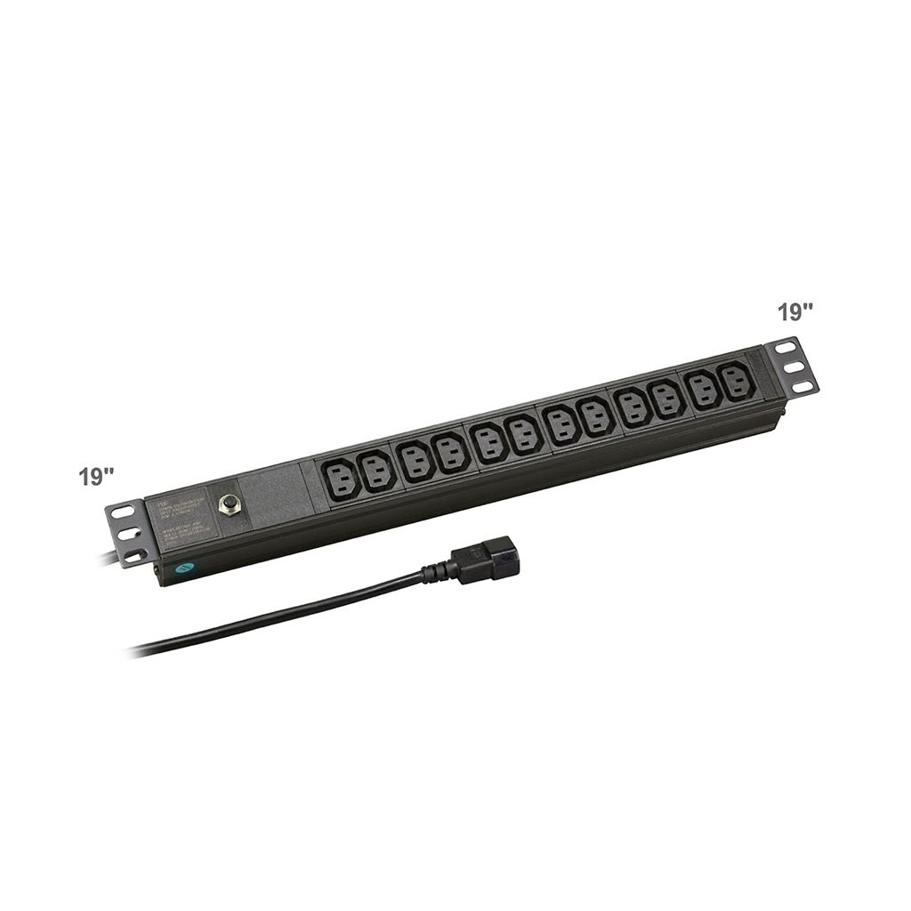 19 Zoll Steckdosenleiste (12-fach C13) für den Anschluss an USV-Anlagen mit C14-Stecker, mit Überlastungsschutz 10A mit Reset Funktion, Zuleitung 1.8m