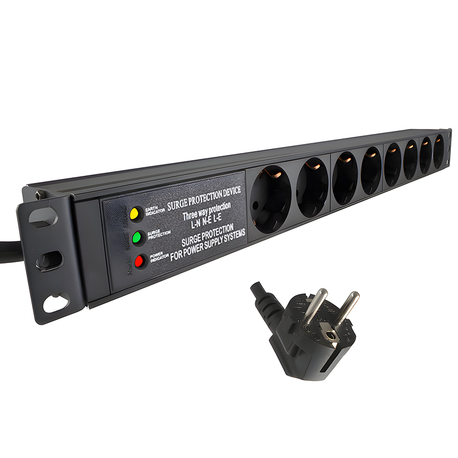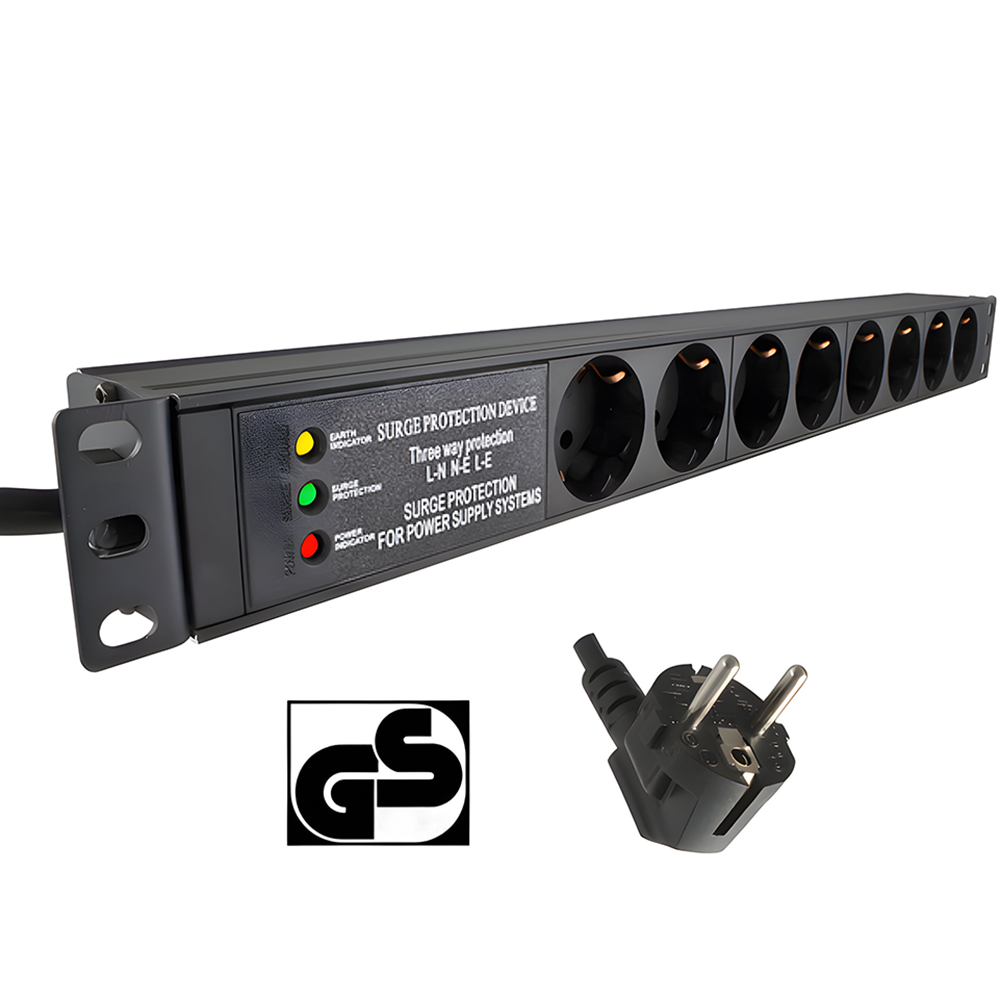 19 Zoll Steckdosenleiste 8x Schutzkontakt mit Überspannungsschutz
