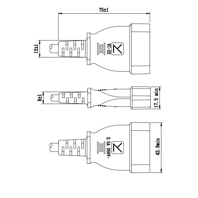 - kurzes 2-poliges Strom-Verlängerungskabel