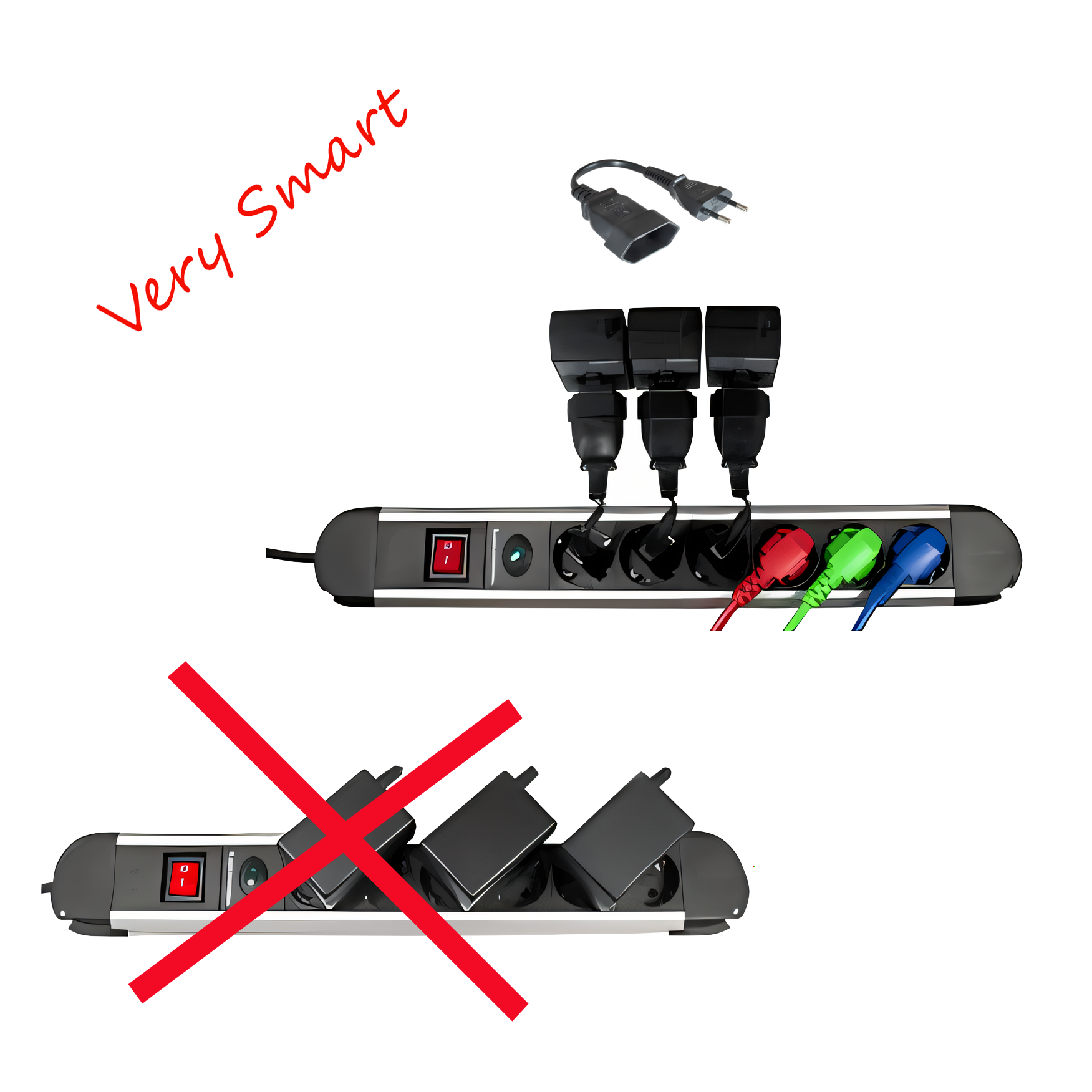 - ideal zur Nutzung von Steckernetzteilen in Mehrfach-Steckdosenleisten