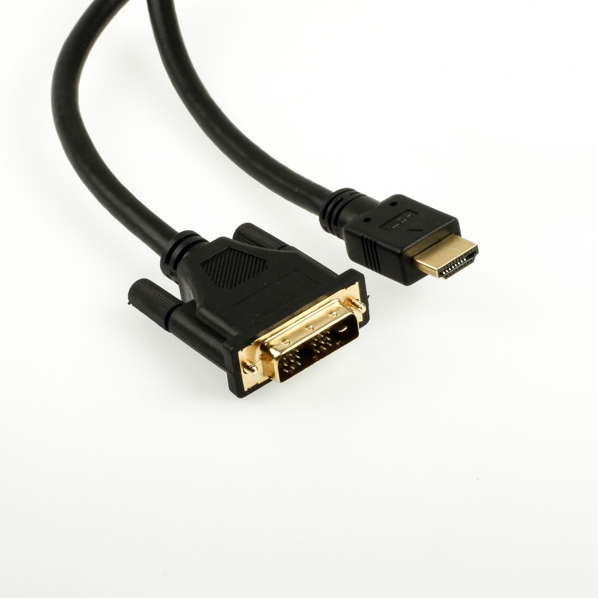 Kabel HDMI zu DVI, 3m, HDMI-A-Stecker (19-polig) an DVI-D-Stecker (18+1 polig), Premium-Qualität, vergoldete Kontakte, 2x geschirmt, rein digital, Farbe: schwarz