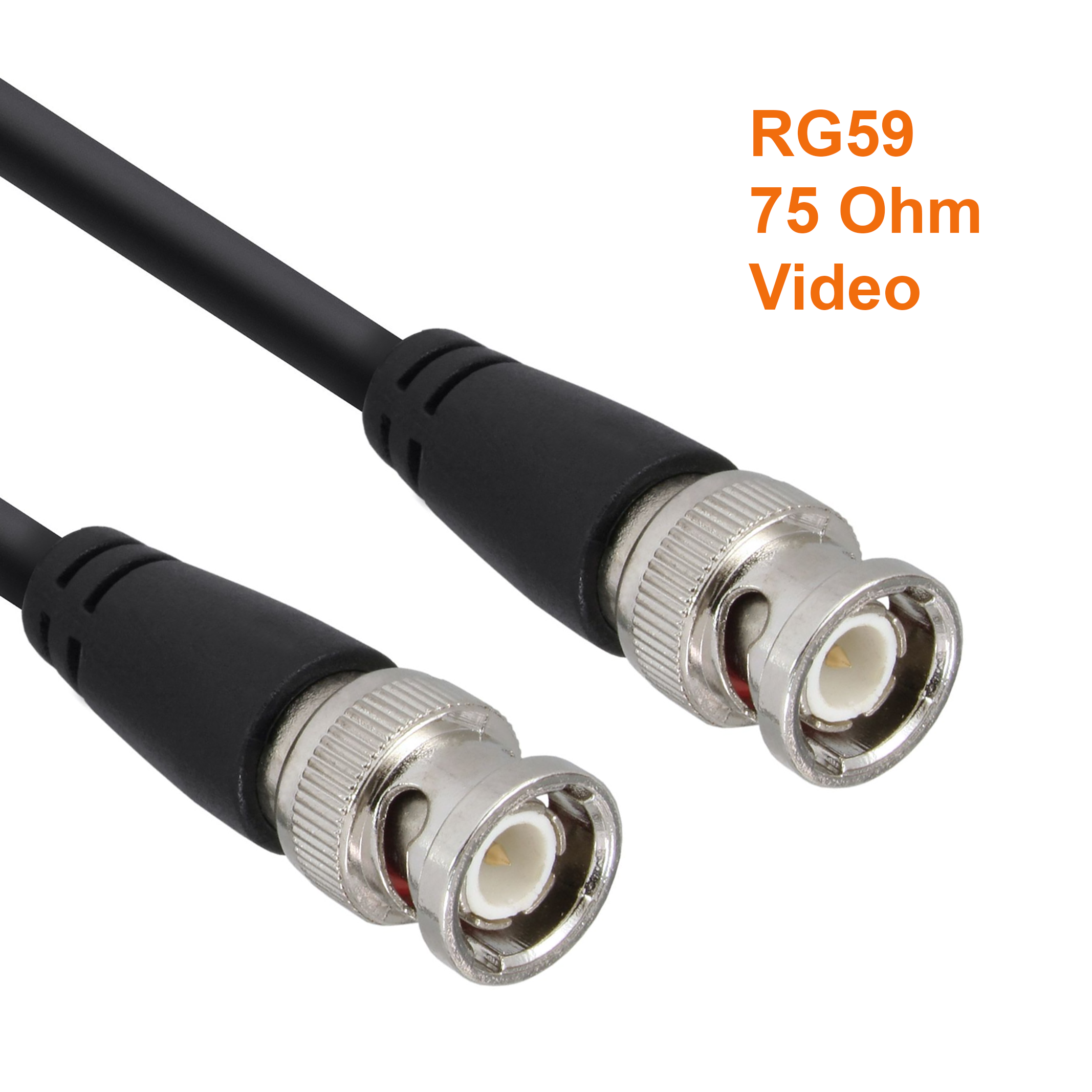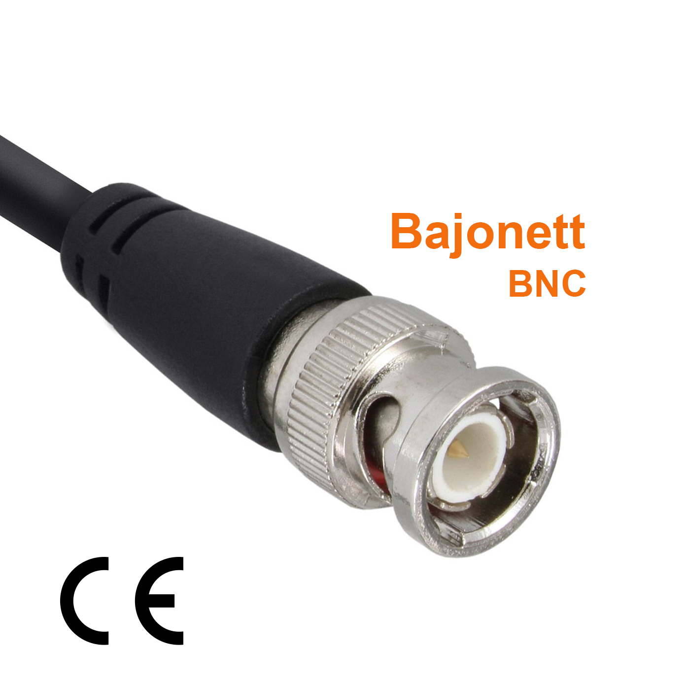 Unsere hochwertigen Kabel sind mit stabilen BNC-Metallsteckern ausgestattet, die per Bajonettverschluss verriegelt werden. Wir haben verschiedene Längen von BNC-Koaxialkabeln mit RG59 / 75 Ohm vorrätig. Das Kabelmaterial ist entsprechend gekennzeichnet. Das Kürzel BNC steht für 'Bayonet Neill Concelman'. Das Kürzel RG steht für 'Radio Guide'.
