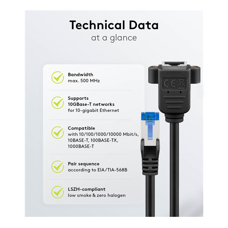 - Spezifikation: Cat. 6A, auch für Cat.6, Cat.5e oder andere RJ45-Verbindungen geeignet