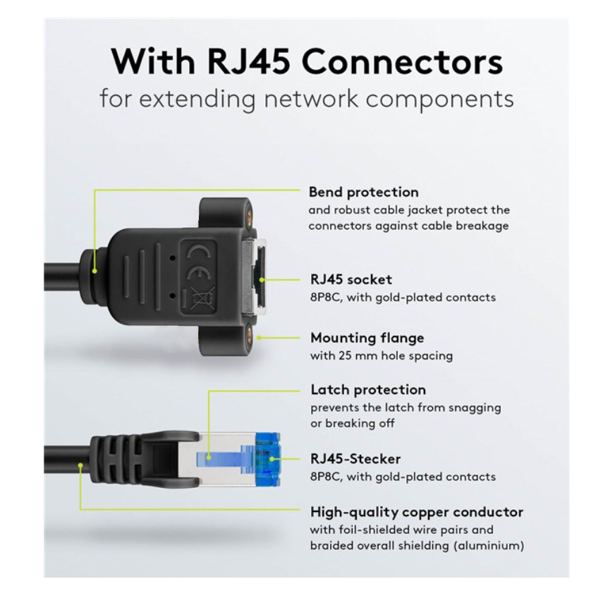 - andere Bezeichnungen: RJ45 Rack Mount, Panel Mount, Montageflansch, Verlängerungskabel, Mount-Flange