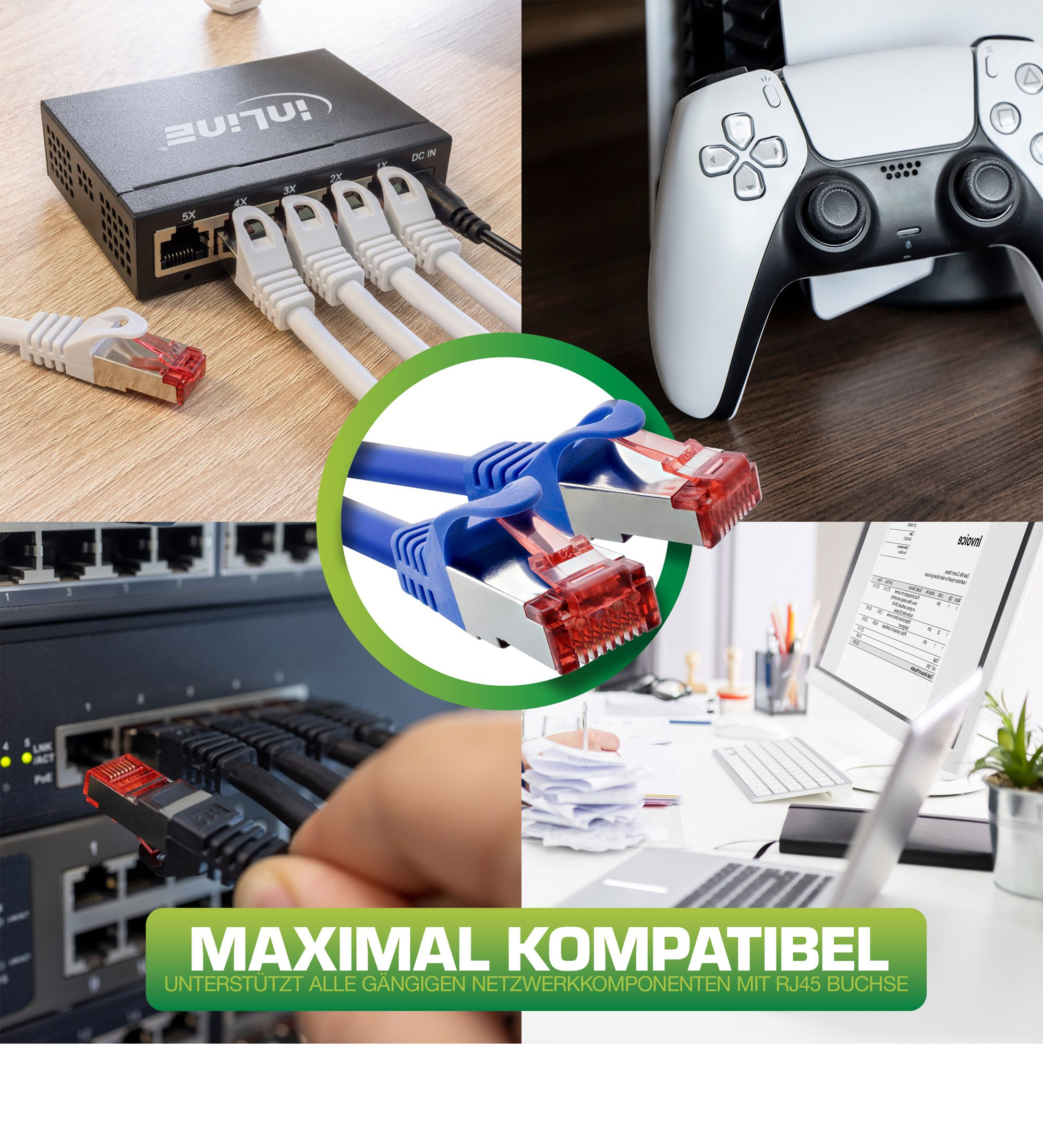 - rot eingefärbte RJ45-Steckerfront zur schnellen Identifizierung Cat.6