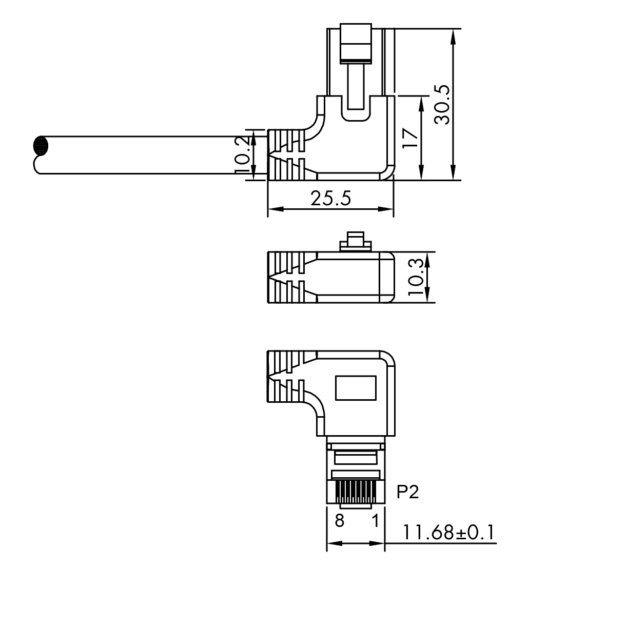 - RJ45 Netzwerk-Stecker mit belastbarer Knickschutztülle