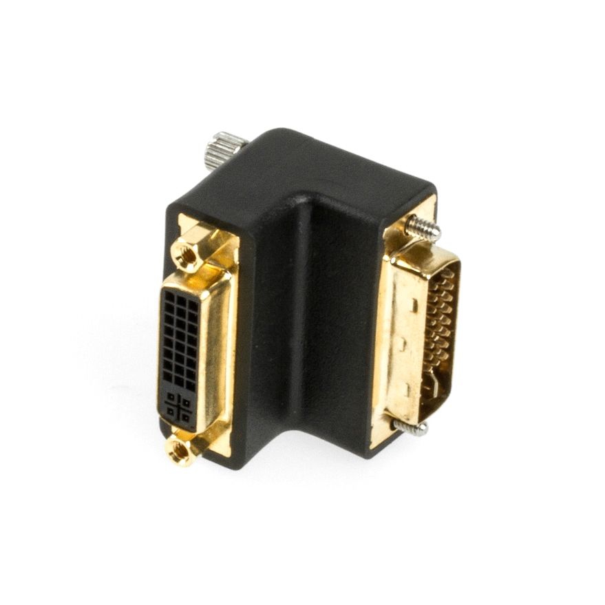 Mit diesem DVI-Adapter können Sie die Buchse Ihres DVI-Gerätes (z.B. Flachbildschirm) um 90° nach rechts abwinkeln, so dass z.B. dicht an der Wand montierte Displays komfortabel angeschlossen werden können.