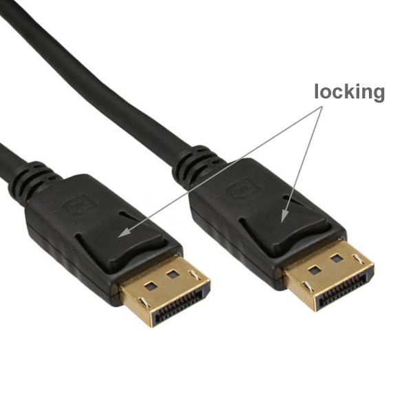 Generell vorteilhaft ist die Verriegelungs-Funktion des DisplayPort™-Steckers. Am DisplayPort™-Stecker befindet sich eine kleine Drucktaste. Die Verriegelung verhindert das versehentliche Herausrutschen des Steckers aus der Buchse. HDMI hat dies nicht.