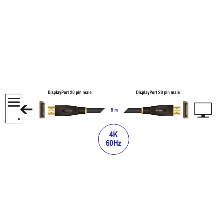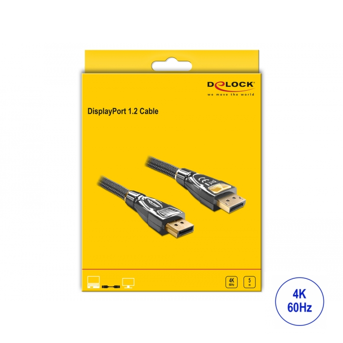 DisplayPort-Kabel in PREMIUM-Qualität, 5m, beidseitig Metallstecker mit Verriegelung, vergoldete Stecker, Stoff-ummantelt, zweifach geschirmt, max. 21,6 Gb/s, 4K ready, konform zu DP 1.2 Spezifikation