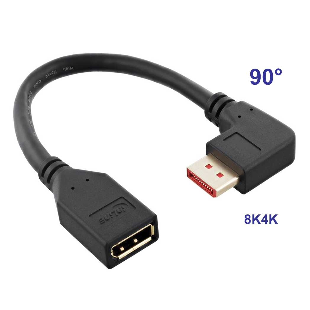 DisplayPort™ Verlängerung mit 90° NACH RECHTS gewinkeltem Stecker, 8K4K, DisplayPort™ 1.4 Spezifikation, Stecker/Buchse, vergoldete Kontakte, Länge ca. 15cm