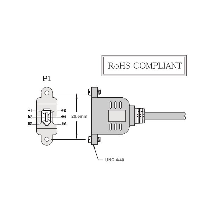 - Buchse anschraubbar (UNC 4/40 Schrauben)
