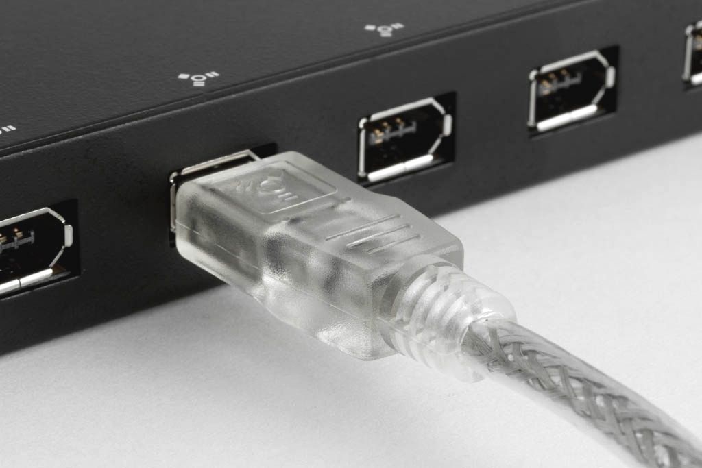- Der Anschluss einer externen Firewire-Festplatte mit 6-poliger Schnittstelle an einen Notebook mit 4-poliger Schnittstelle.
