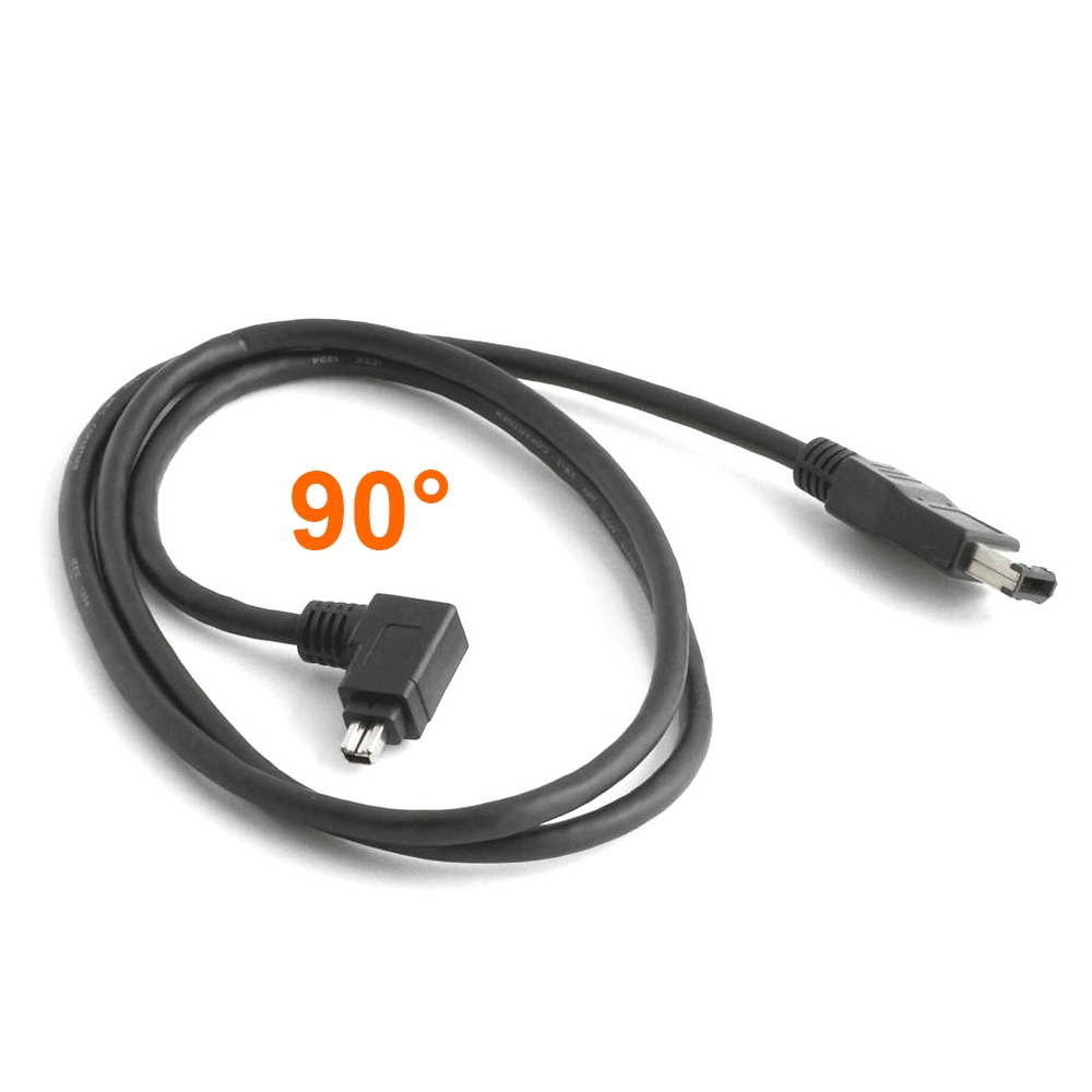 Dieses speziell für uns gefertigte Firewirekabel verfügt über einen 4- und einen 6-poligen Stecker. Das Besondere ist der nach links abgewinkelte 4-polige Stecker. Dadurch kann das Kabel besonders gut bei beengten Platzverhältnissen an der 4-poligen Firewire-Buchse eingesetzt werden. Ausserdem lässt sich der abgewinkelte Stecker deutlich besser gegen ein Herausrutschen fixieren als ein gerader Stecker.