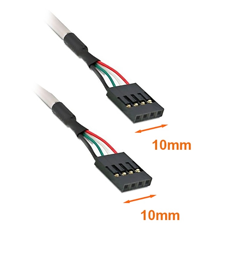 Die Platinen-Pins müssen einen Abstand von 2.54mm haben. Z.B. können Sie den internen USB-Port eines Multipanels über den USB-Pinheader-Stecker Ihres Mainboards anschließen. Der Pinabstand von 2.54mm (1/10 Zoll) ist sehr verbereitet.