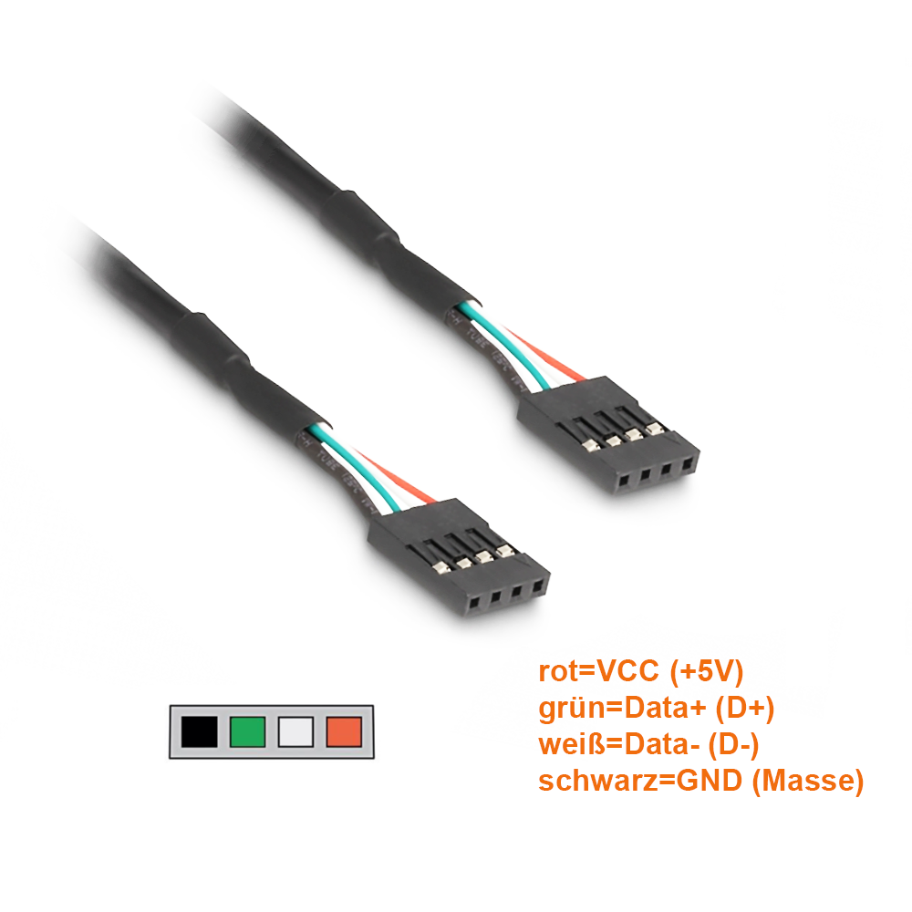 Die 4 Adern des internen USB-Kabels sind entsprechend der USB-Norm farbcodiert: