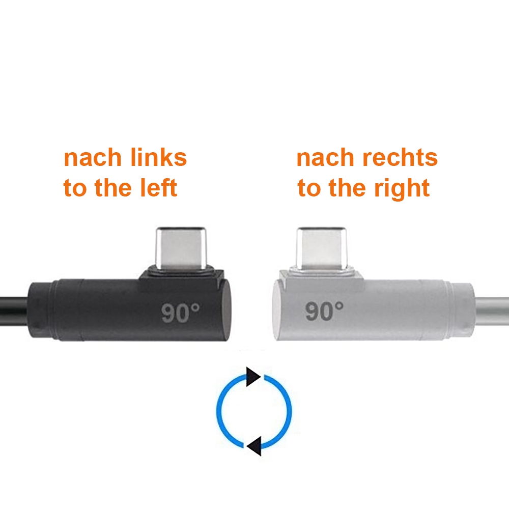 - kann durch den symmetrischen C-Stecker wahlweise in zwei Richtungen am Gerät entlang geführt werden: nach rechts/links 90°
