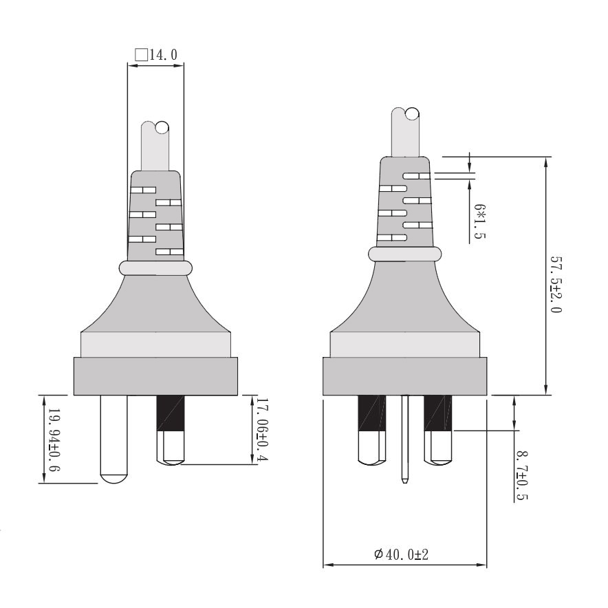 Um eine sichere Handhabung der Stecker zu gewährleisten, sind 2 Stiftkontakte des australischen Stromkabels teilisoliert.