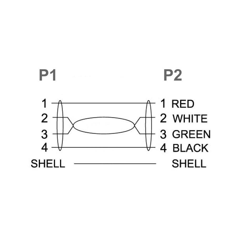 - alle 4 Pins inkl. Schirmung 1:1 verbunden