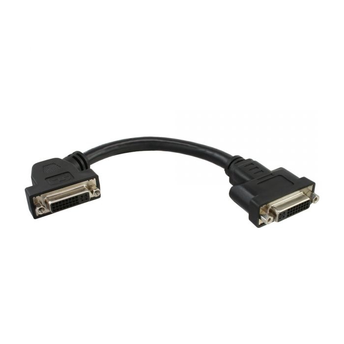 Dieses kurze DVI-Adapterkabel mit beidseitiger DVI-Buchse benötigen Sie, wenn Sie bei einer Konfiguration (z.B. eigenes Gehäuse) die DVI-Schnittstelle nach außen führen wollen. Eine DVI-Buchse des Montagekabels ist anschraubbar (DVI-Einbaubuchse). Die Schrauben liegen bei.