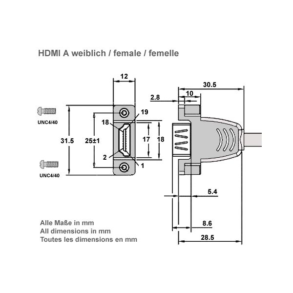 - erforderliche Gehäuseöffnung der anschraubbaren HDMI-Buchse: ca. 8x18mm