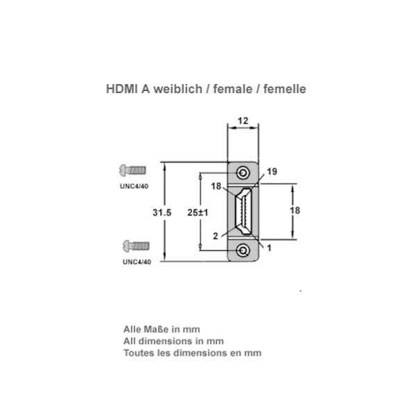 - erforderliche Gehäuseöffnung der anschraubbaren HDMI-Buchse: ca. 8x18mm