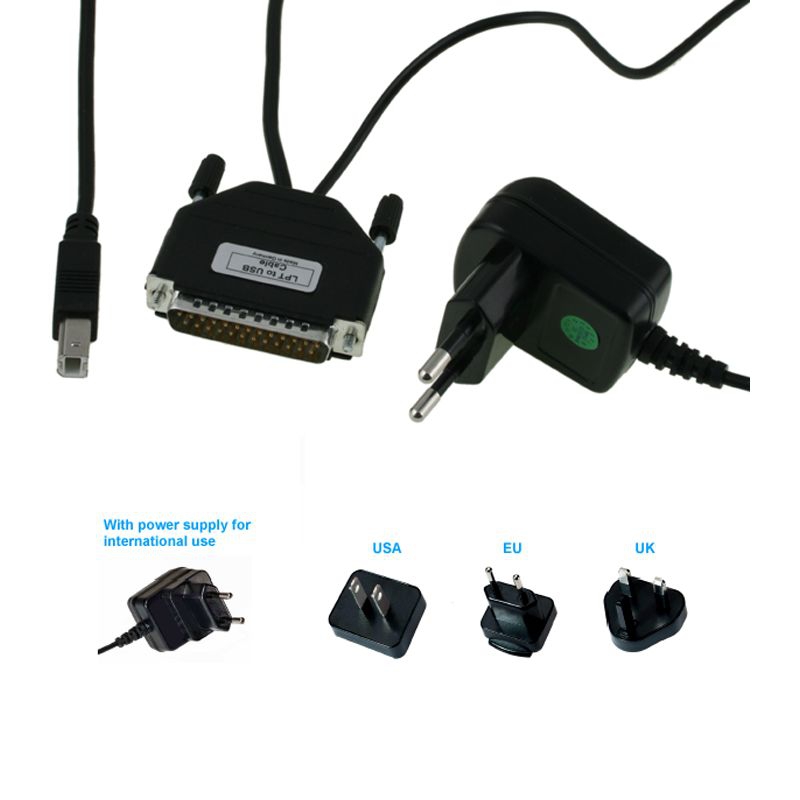 Parallel USB Reverse Adapter LPT2USB mit Netzteil für internationalen Einsatz