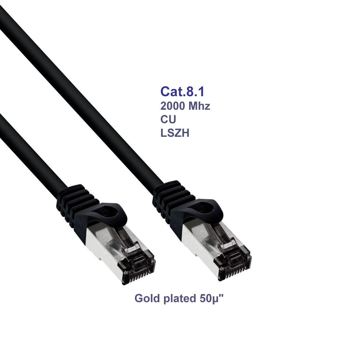 Patchkabel, S/FTP (PiMf), Cat.8.1, 2000MHz, halogenfrei, Kupfer, schwarz, 0,5m