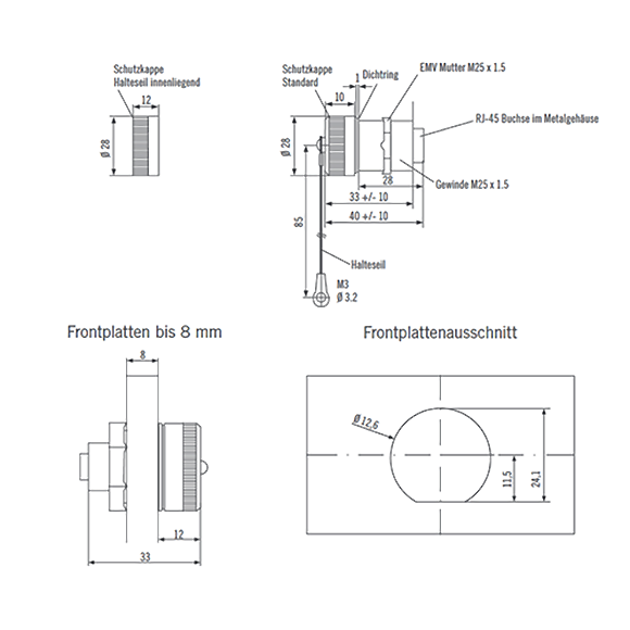 - Montageadapter für RJ45 (anschraubbare Patchkabel-Kupplung)