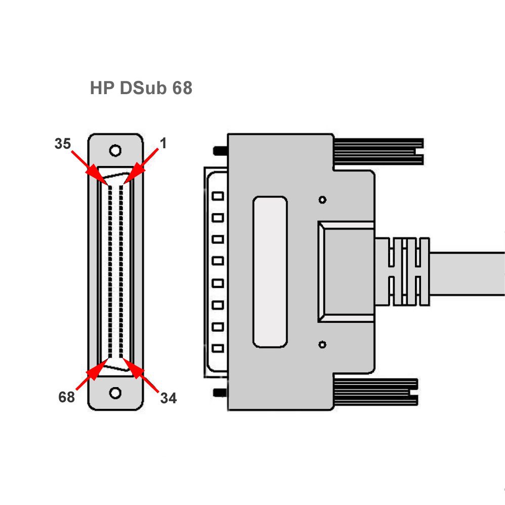 - 2x HP-DSub-68-Stecker (68-polig, männlich) mit Schrauben