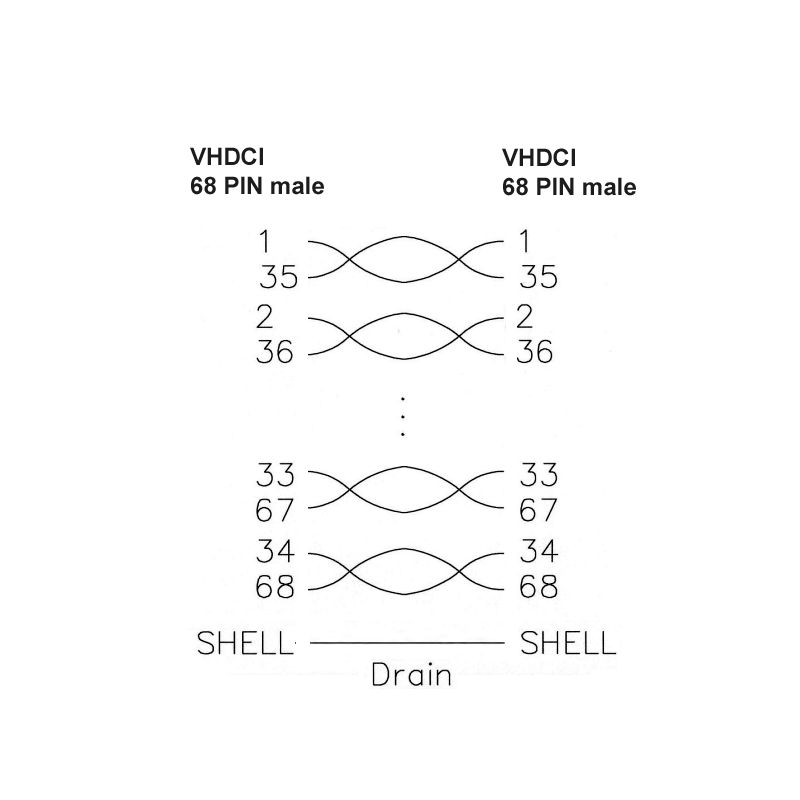- beidseitig VHDCI Typ 68-polig männlich (hat mittigen Kontaktsteg, Pitch 0.8mm)