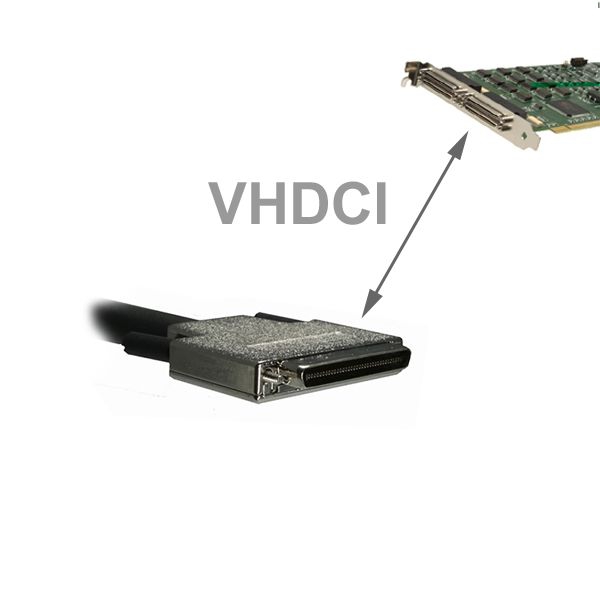 Die Mehrzahl unserer Kunden verwenden das 68-polige 1-zu-1 verdrahtet Kabel für Messkarten (z.B. Analog/Digital-Wandler, Datenerfassungskarten von National Instruments). Die VHDCI-Stecker aus Metall sind klein genug, um bei einer NI-Karte mit nebeneinander liegenden Ports (z.B. NI PCI-6259, NI PCIe-6353) beide Ports gleichzeitig zu nutzen.