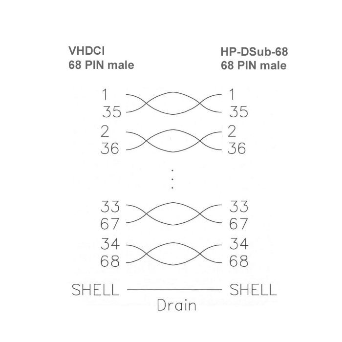 - VHDCI Stecker auf HP-DSub-68 Stecker mit Schrauben