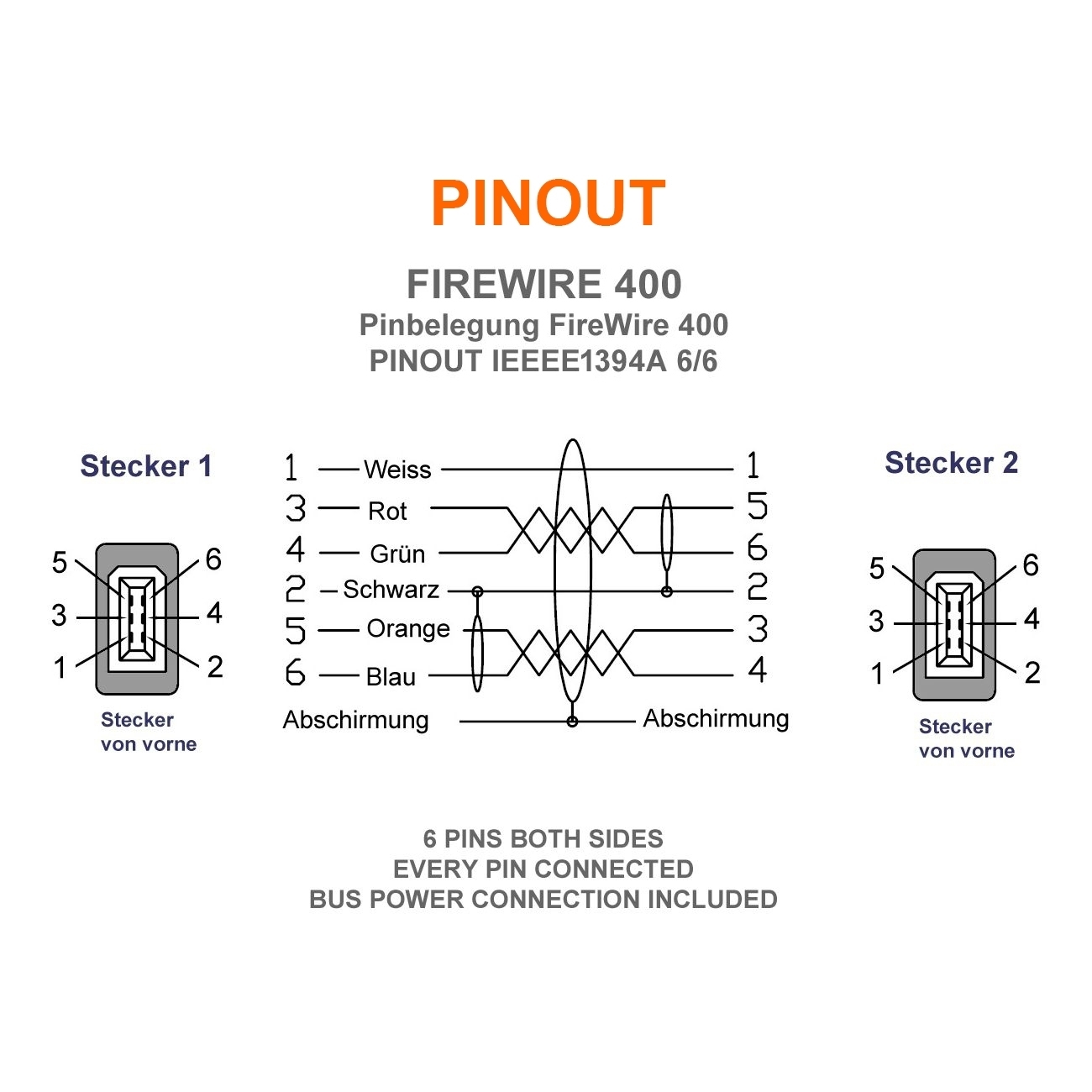 Das IEEE1394a-konforme Kabel ist doppelt abgeschirmt (Folien- und Geflechtschirm) und hat paarig verdrillte Datenleitungen. Die Stecker sind intern komplett metallgekapselt. Alle drei IEEE-1394a-Geschwindigkeiten werden unterstützt: S400 mit 400 MBit/s (Firewire 400), S200 mit 200 MBit/s und S100 mit 100 MBit/s.