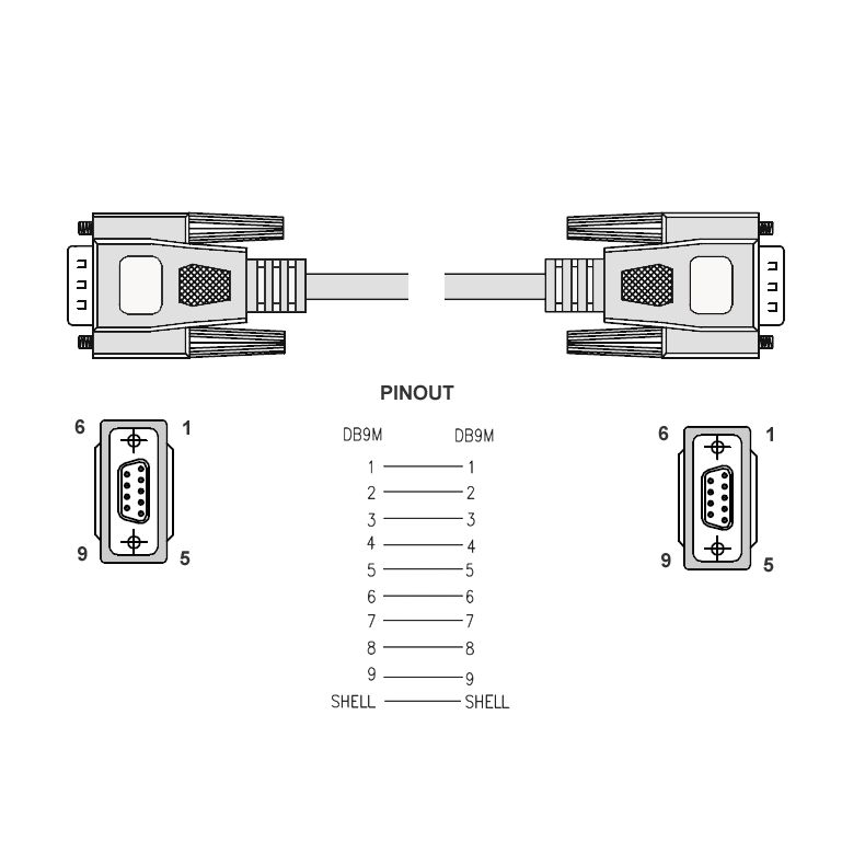 - beidseitig Stecker DSub-9 (DB9 männlich) mit 9 Kontakt-Stiften