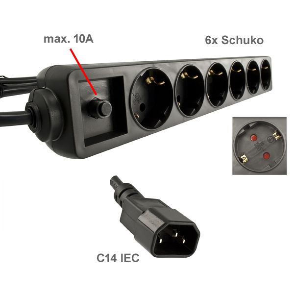 - Überlastungsschutz: 10A mit Reset Funktion (weil C14 max. für 10A zugelassen)