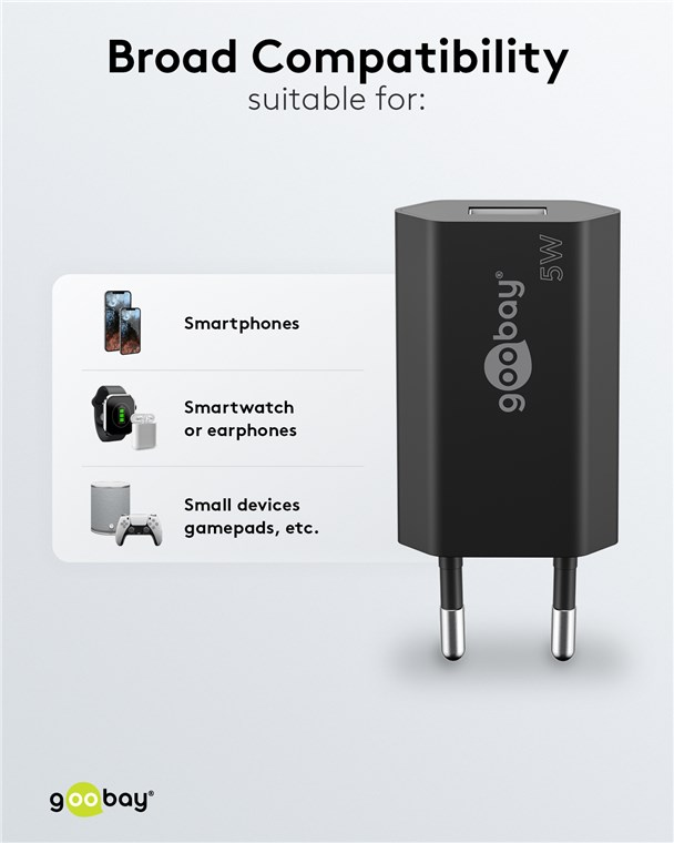 - Ladeadapter mit 1x USB-Anschluss, Typ A Buchse