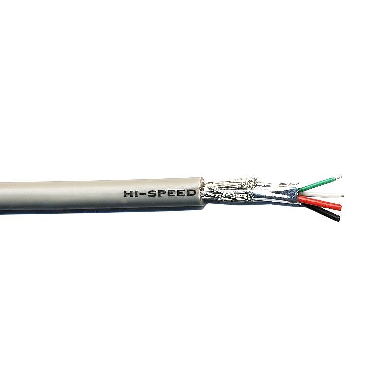 Mit den Adernstärken AWG28/1P und AWG24/2C, d.h. mit einem dickern Adernpaar für die 5V-Stromversorgung, entspricht das Material den Anforderungen der USB-Norm und ist für die Konfektionierung max. 5m langer USB-Kabel geeignet. Die Datenleitungen (AWG28/1P) sind paarig verdrillt.