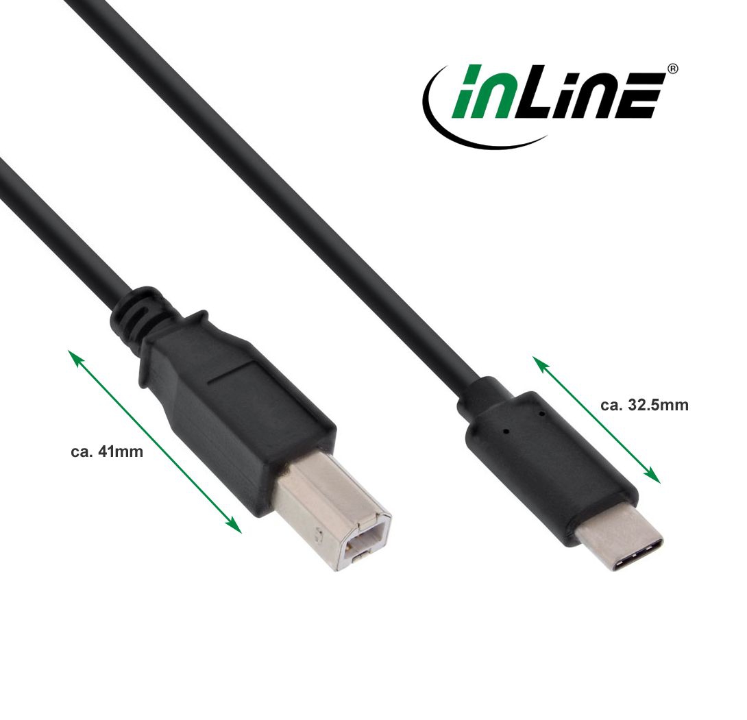 - USB 2.0 Kabel mit Typ C Stecker (Type-C™) auf USB 2.0 B Stecker