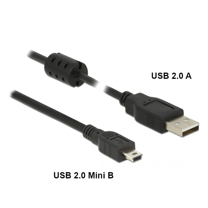 USB 2.0 Kabel mit Ferritkern, Stecker A an Mini B, 70cm