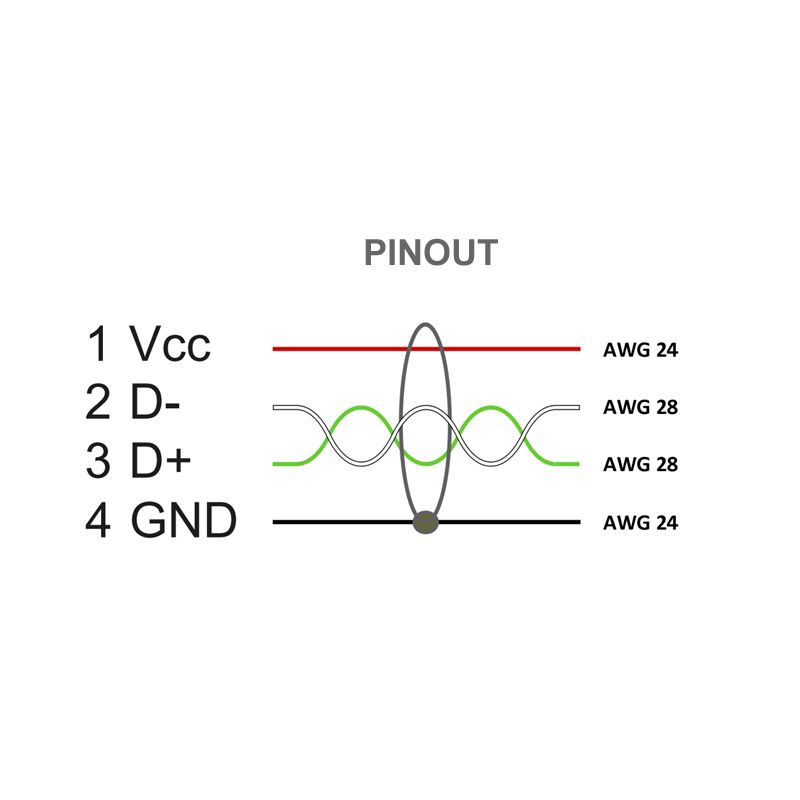 - Adernfarben (intern): weiß, grün, rot, schwarz