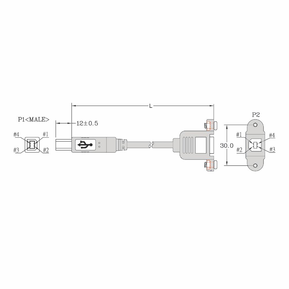 USB 2.0 Panel-Montagekabel, B-Buchse anschraubbar an B-Stecker, 2m