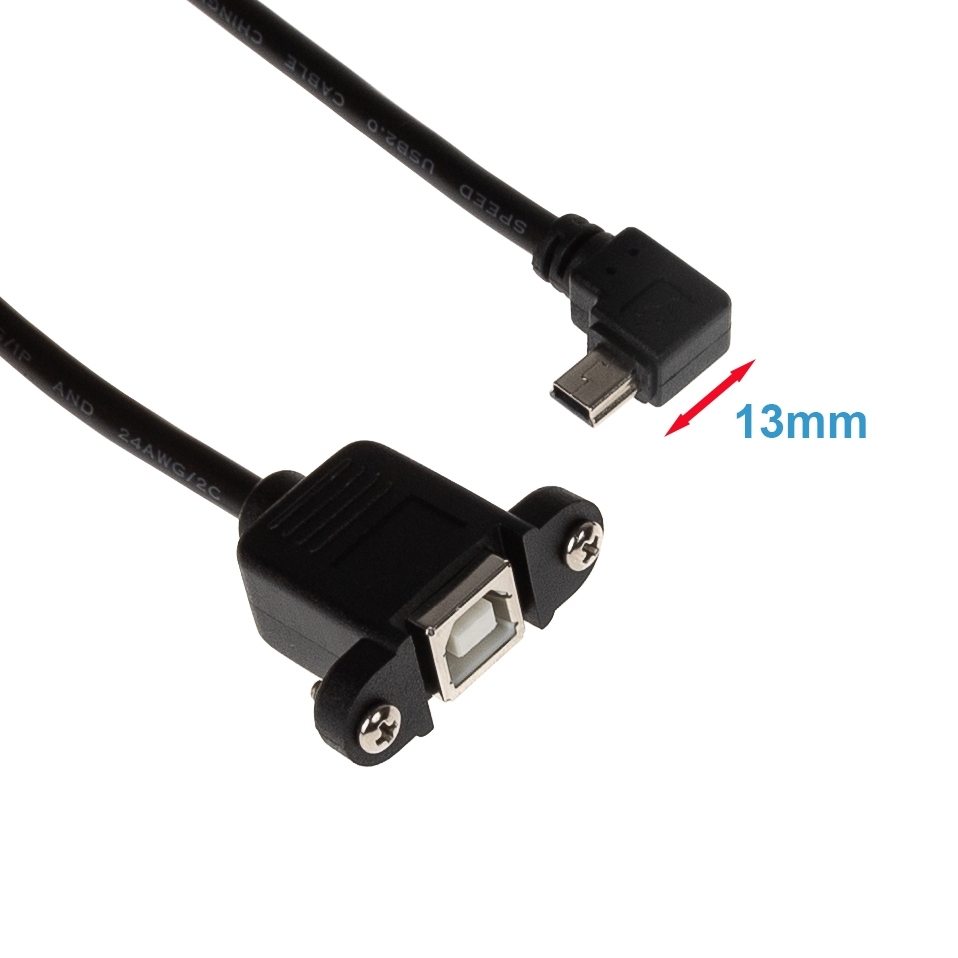 USB 2.0 Panel-Montagekabel: B-Buchse anschraubbar auf Mini-B-WINKEL-Stecker, 50cm