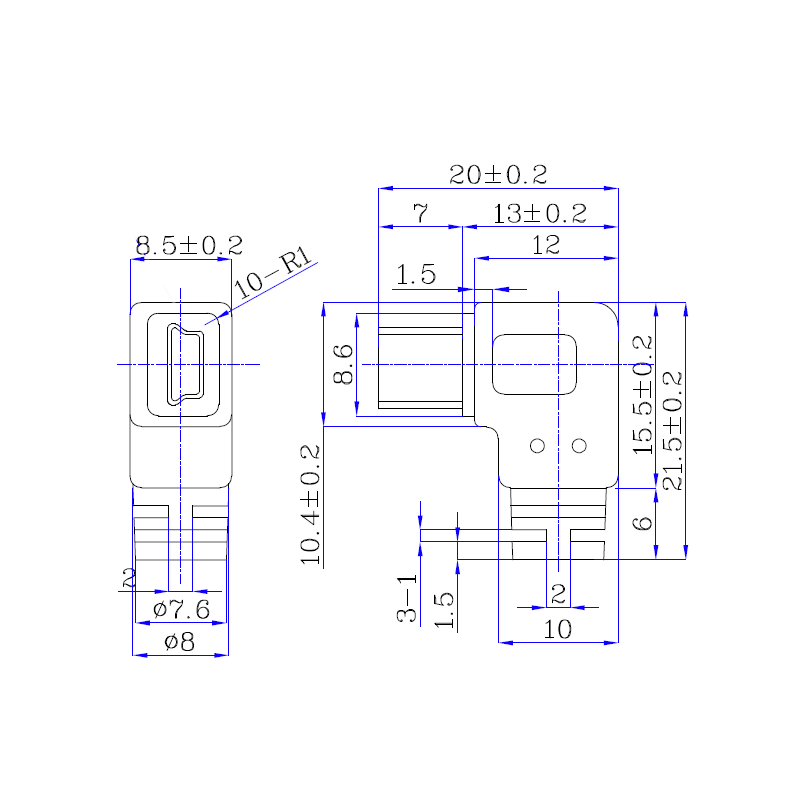- Anschluss 2: USB 2.0 Mini B Stecker 90° gewinkelt