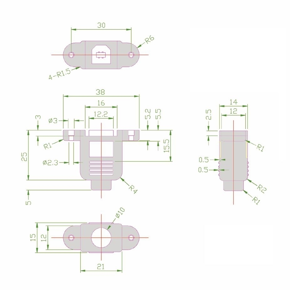 - Schraubenabstand bei B-Buchse: 30mm (siehe Zeichnung)