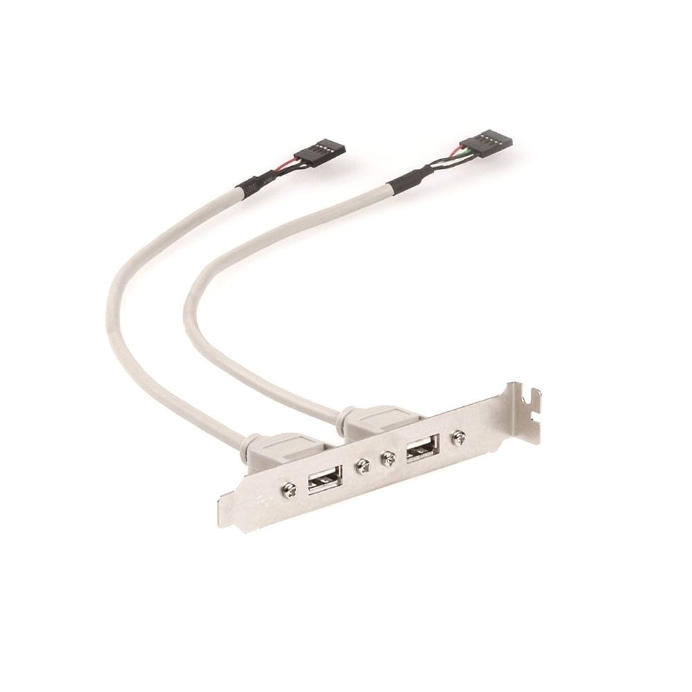 USB-Slotblech: 2x USB A Buchse, intern: 2x Pfostenverbinder 5-polig für Mainboard (Raster 2.54mm), Kabellänge: ca. 30cm