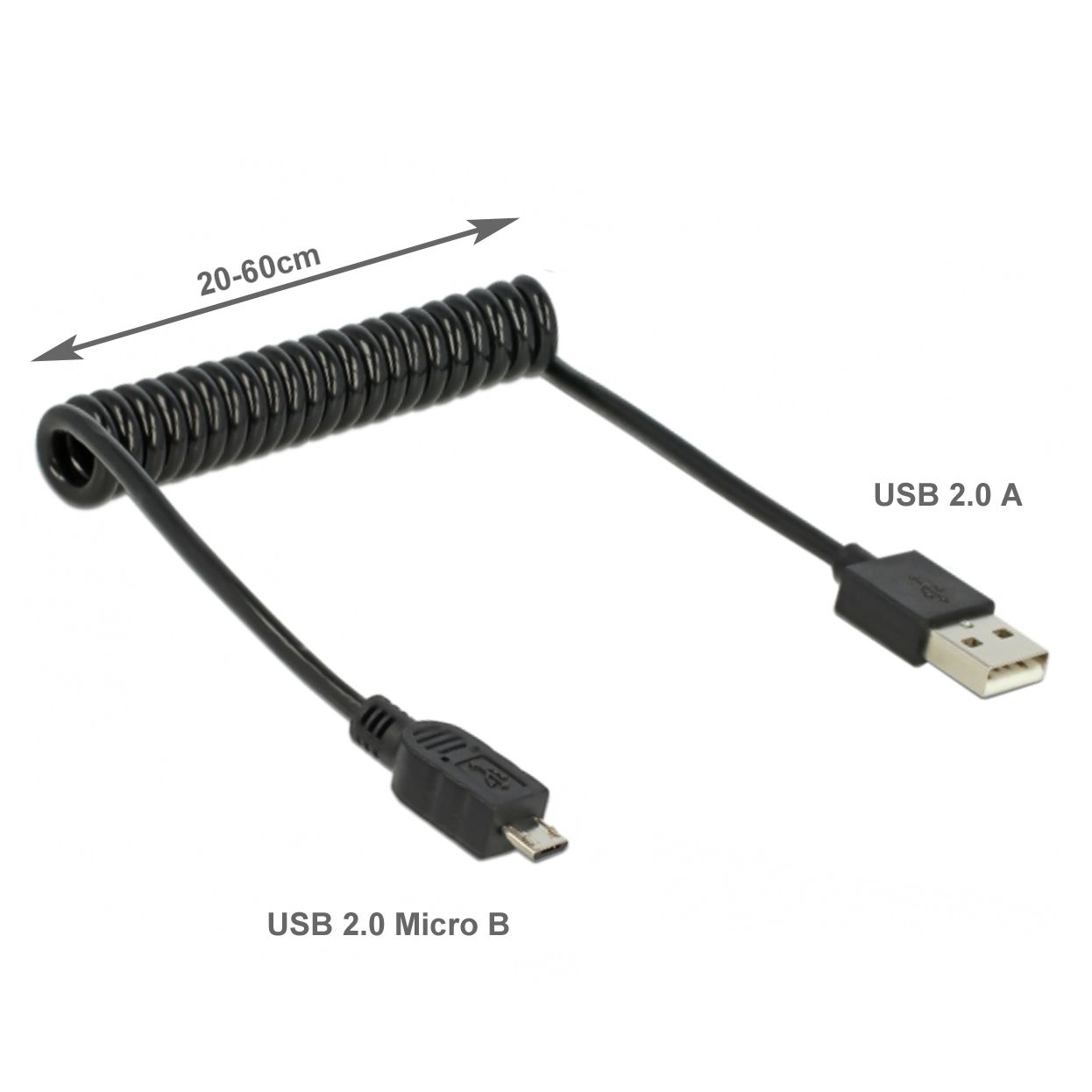 - USB 2.0 Micro B Spiralkabel