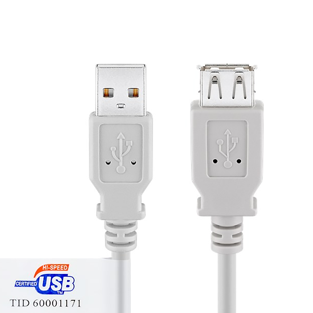 Zertifiziertes USB 2.0 Verlängerungskabel (www.usb.org, Zulassungs-Nr. TID 60001171), 1.8m, AWG28/1P AWG24/2C, AA, doppelt geschirmt, UL-Kabelmaterial, USB High Speed (480mbps), grau