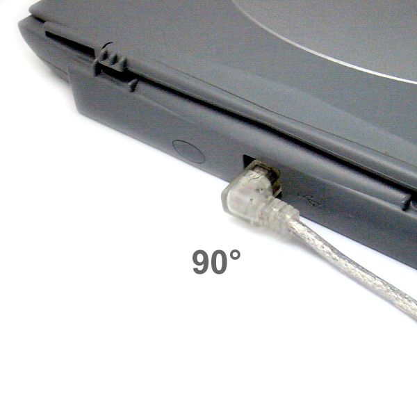 Wir bezeichnen das Kabel als 90° NACH RECHTS abgewinkelt. Bitte prüfen Sie die Ausrichtung der USB-Buchse Ihres USB-Gerätes. Sie müssen die Position der 2 abgerundeten Ecken der USB-B-Buchse beachten. Möglicherweise ist das was wir als 'nach rechts' bezeichen bei Ihnen nach oben, unten oder links. Wenn die beiden runden Ecken der USB-B-Buchse oben sind, zeigt das hier angebotene Kabel NACH RECHTS (in Einsteckrichtung gesehen).