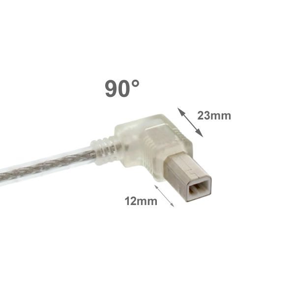 Das hier angebotene USB-Kabel hat einen um 90° abgewinkelten USB-Stecker Typ B. Dadurch eignet sich das Kabel besonders für den platzsparenden Anschluss von USB-Geräten.