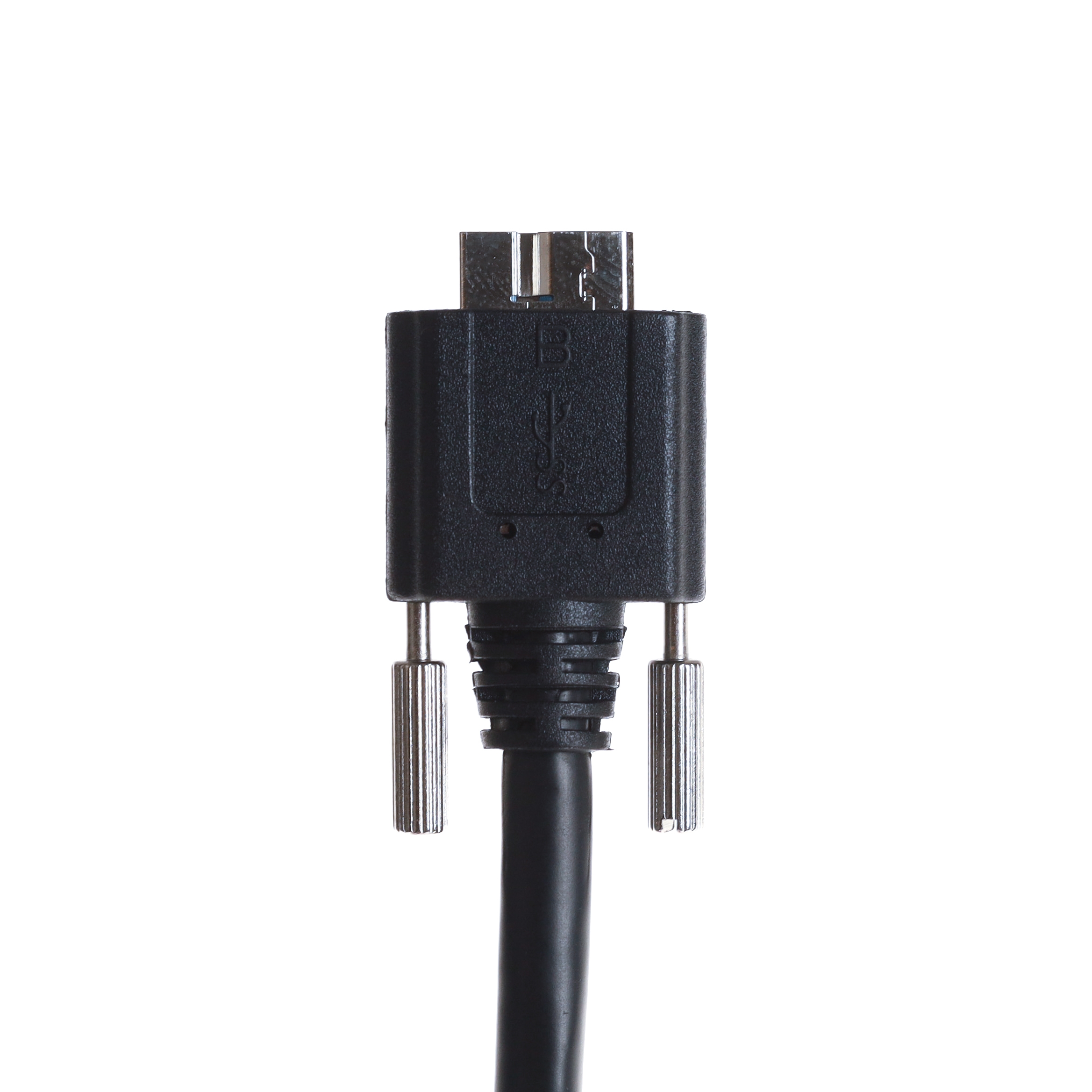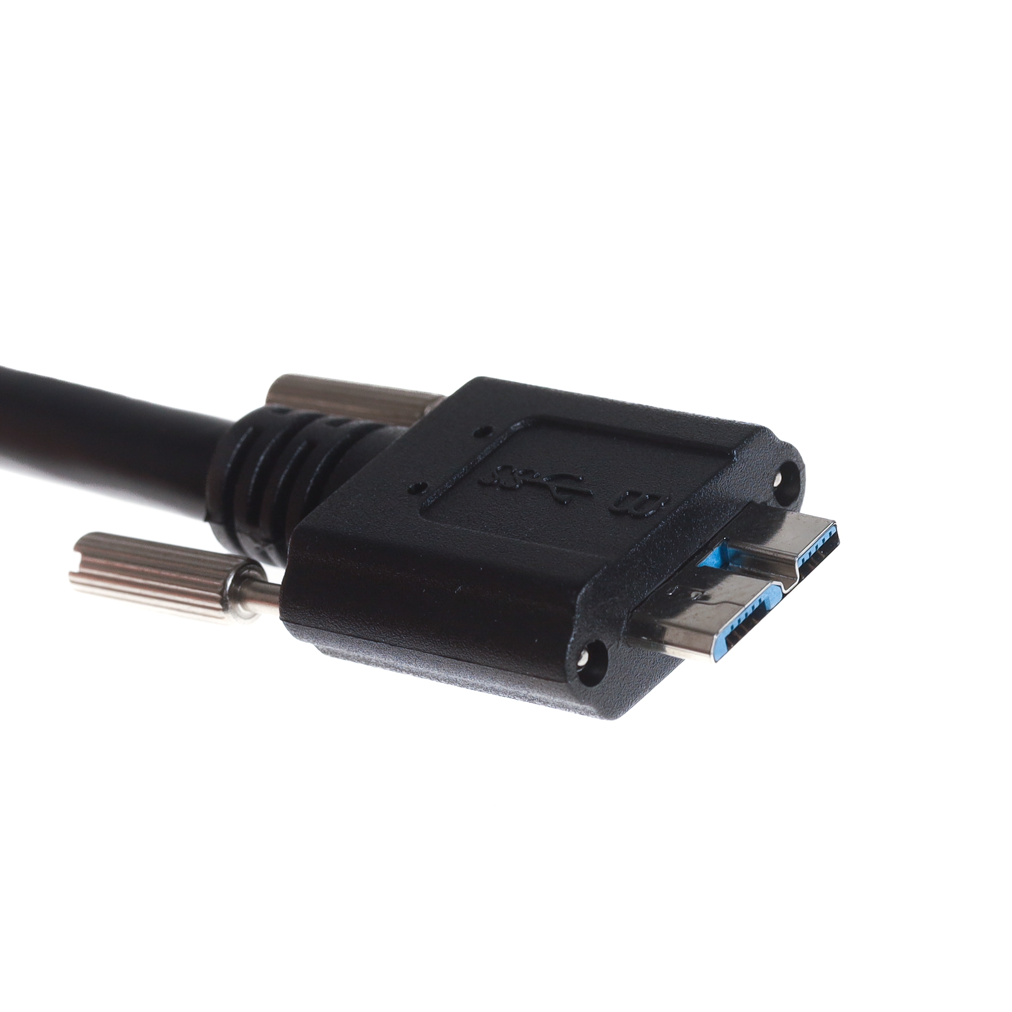 Der Micro B Stecker wird mittels zweier Schrauben (Typ M2x0.4) bei der Kamera befestigt. Der Schraubenabstand beträgt 18mm. Dies ist Standard. Somit kann dieses Kabel mit zahlreichen Industriekameras verwendet werden, z.B. von Point Grey (z.B. Grasshopper3), Baumer Optronic (z.B. VisiLine Serie mit USB3 Vision interface, Modell VLU), Basler (z.B. ace USB 3.0 Camera), IDS Imaging Development Systems (z.B. USB3 uEye LE, uEye ML, uEye LE), Toshiba Teli (BU Serie), Sentech (STC-M Serie), Matrix Vision (z.B. USB3 Vision - mvBlueFOX3) oder XIMEA.
